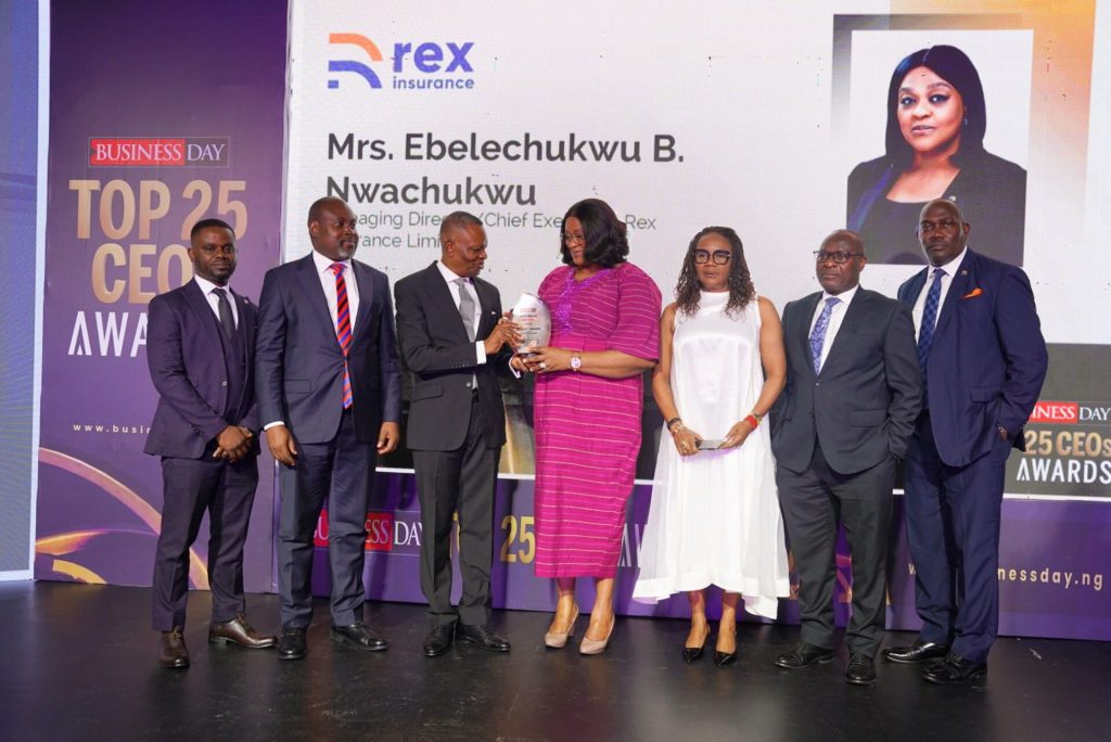 At the prestigious BusinessDay Top 25 CEOs Award Night, Mrs. Ebelechukwu Nwachukwu, Managing Director and Chief Executive Officer of Rex Insurance Nigeria, was honored as one of the Top CEOs in Nigeria.
